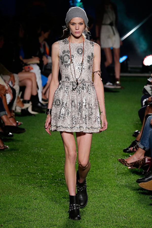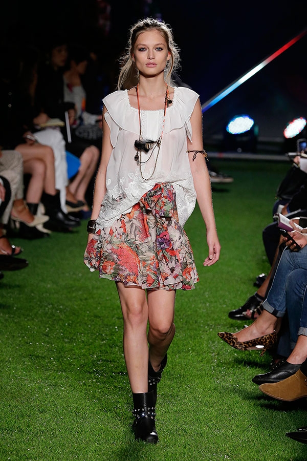 المرأة في عرض Blugirl شابة تحب المهرجانات الموسيقية البوهيمية في الهواء الطلق، مثل Coachella الاميركي أو Glastonbury البريطاني.