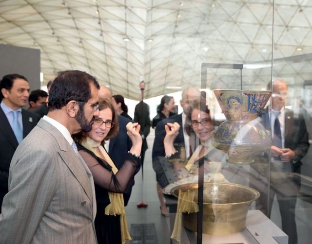 وقد اطلع الشيخ محمد بن راشد على بعض مقتنيات المتحف والتي تشمل لوحات زيتية وتماثيل ومنحوتات تمثّل العصور الإغريقية والرومانية والمصرية وحضارة بلاد الرافدين. كما شملت جولته متحف الآثار الإسلامية الذى يعد جزءا مهما من متحف اللوفر ، ويحوي آثارا إسلامية متنوعة من لوحات ومنحوتات وزخارف وآيات قرآنية وسواها، والتي جيء بها من مصر الى فرنسا إبان الحملة الفرنسية على مصر بقيادة نابليون بونابرت في العام 1798.
