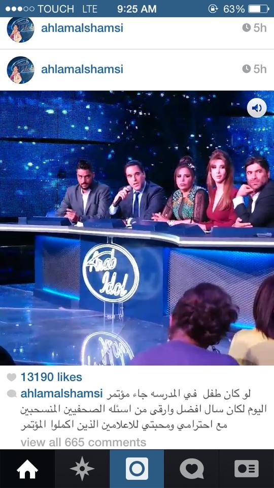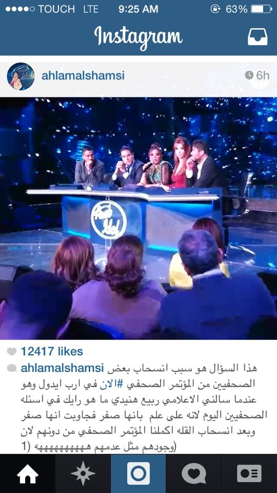 منذ الصباح الباكر حرصت أحلام أن تنشر فيديوهات على حسابها على إنستغرام تضهر فيها حقيقة الإشكال الذي حصل في المؤتمر الصحافي الذي عقد البارحة في أراب أيدول arab idol. الفيديو يظهر انسحاب الصحافيين وغضب أحلام وتدخّل مازن حايك الذي حاول جاهداً بحنكته أن يتدارك الأمر. لكن الأوان قد فات وانسحب عدد كبير من الصحافيين من المؤتمر. وغرّدت أحلام على تويتر: " اليوم عرفت ماهو معنى مصطلح العهر الإعلامي في المؤتمر الصحفي مع احترامي للبعض". " تحيه حب وتقدير الى قشور الصحافه الهشة وعاشت الوحدة العربية، ولتسقط الاقلام الصفراء". فمن كانت تقصد بالعهر الإعلامي؟ وكيف بدأت القصة؟ وفي التفاصيل انه بعد سؤال طرحه أحد الصحافيين على أحلام يسألها فيه "ما رأيك بأسئلة الصحافة" أجابت ان الاسئلة دون المستوى و"عيب". فاعتبر الإعلاميون الحاضرون الأمر إهانة وانسحب معظمهم من المؤتمر ما استدعى تدخّل الناطق الرسمي باسم مجموعة mbc مازن حايك الذي استدرك الأمر قائلاً إنه يحق للصحافة ان تسأل ما تريد وأن المحطة تتشرف بكل الاعلاميين الحاضرين.