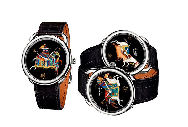 في موكب خيّالة من الرسوم الزخرفية المستوحاة من واحدةٍ من مجموعات الخدمات الأيقونيّة من دار هيرميس، تُسلط ساعة Arceau Cheval d’Orient من Hermes الضوء على فن طلاء الورنيش الفرنسي من خلال ثلاثة نماذج متعلقة بفن تصميم الساعات.