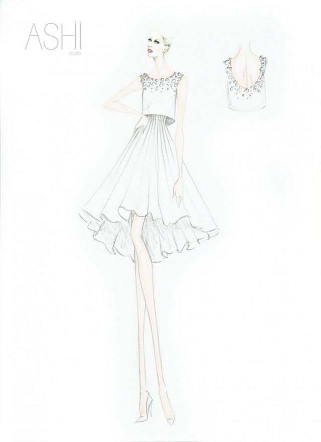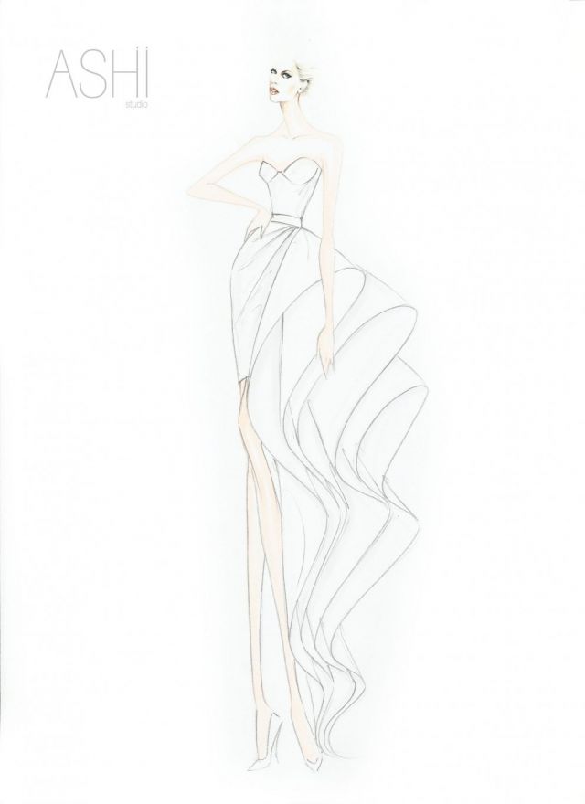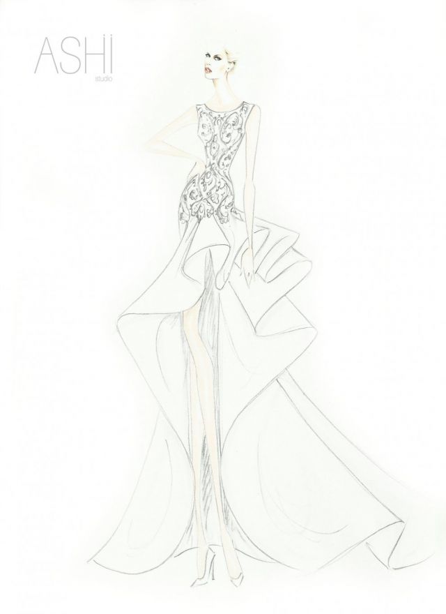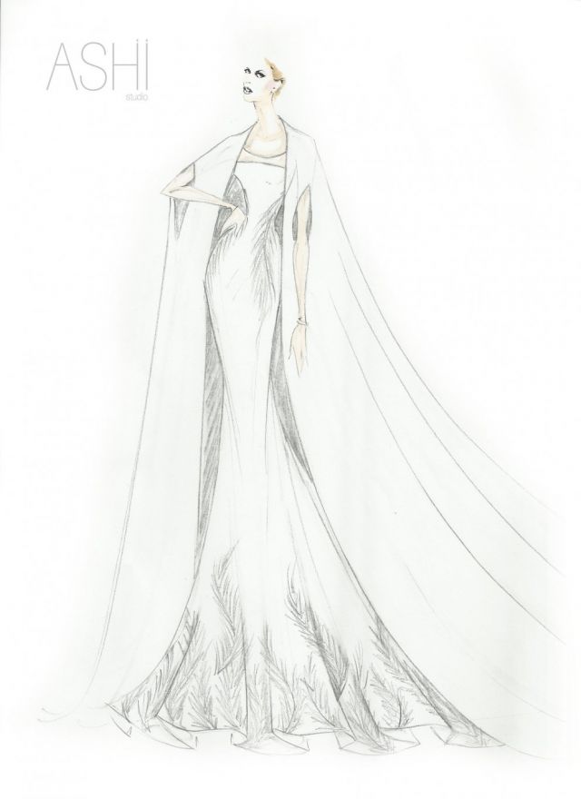 الفستان الأول للسيدة تالا علم الدين: فستان من الغازار الرمادي من مجموعة الملكة المنفية.