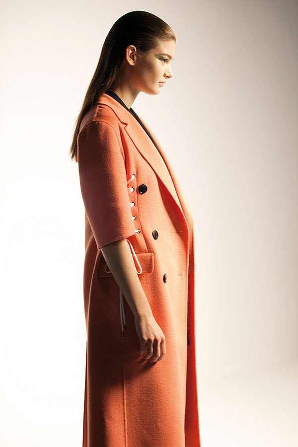 طيّات صدر مستدقة للسترة التي تأتي مزدوجة الصدر مع صفين من الأزرار القرون وتحلّ محل العناصر التقليدية التي طالما طغت على البذلات النسائية. ذلك في حين يحوّل مشغل التصاميم المبهمة قمصان الرجال إلى فساتين ويستعمل النيلون شكلاً جديداً من نقشة «كاناج» المضرّبة ليصنع منها فساتين منسّقة بدقة، مع كشمير انسيابي يُستعمَل على ناحيتيه لألبسة الكوكتيل. وبالطبع تكثر رسوم مشاهد المدينة ورموزها، فهنا أحذية الرياضة المنتصبة على كعوب رفيعة وكأنها ضرب جديد من ضروب أحذية «ستيليتّو» وقد جُرِّدَت من ربطاتها التي استُعمِلَت لصدريات المعاطف الطويلة الواسعة؛ وهناك رسوم ونقوش «أطلس» بأسلوب «آرت ديكو» الهندسي التي كانت تكثر في مجموعة المجوهرات وعلى الأقمشة المضرّبة، نراها اليوم خاضعة لسلطة تلك المرأة الجديدة. الأشكال مركّبة بدقة وبطبقات عدة، إنها خلاصة ما هو أنثوي ورجالي، «ديور» الماضي والحاضر، شريحة عبر التاريخ وتزاوج للرموز المتوارثة للألبسة. أما الحديقة من الموسم السابق فقد تمّ استبدالها بفسحة بيضاء، أزهار كهربائية مجرّدة منسكبة من السقف، تعكس أضواء المدينة المتلألئة في البعيد. وحسب قول «سيمونز»: «أردت الاقتراب من فكرة المدينة التجريدية، حيث أنه المنظور الذي أرى به المدينة في هذه المجموعة. إنها فكرة الرومنسية والواقعية، عالم من الإمكانات. وأردت في الوقت نفسه أن أقدّم للنساء الحرية ووفرة الخيارات في طريقة لبسهنّ».