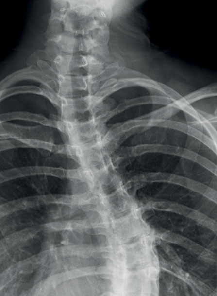 أيضاً في الفحص العيادي يلاحظ أن جانبي الجسم غير متماثلين. هذه العوامل كلّها تدعو إلى إجراء صورة شعاعية تؤكد وجود التواء في العمود الفقري.