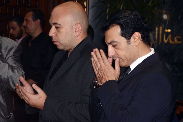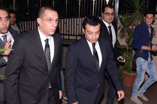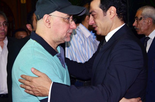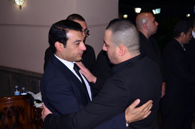وقد ظهرت علامات الحزن والبكاء على إيهاب أثناء تلقيه العزاء ، لكنه كان يحاول طوال الوقت إخفاء مشاعره ه عن أعين الجميع واضعاً يده على عينيه.