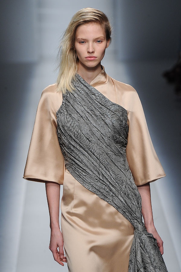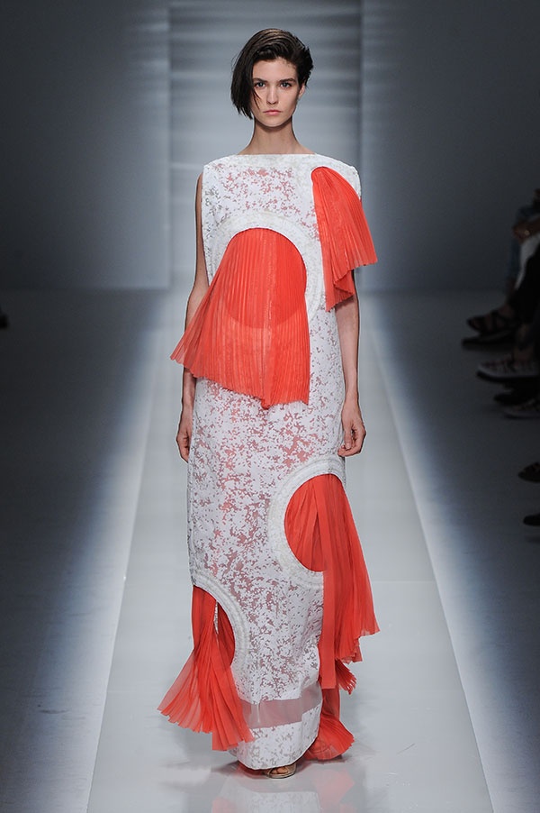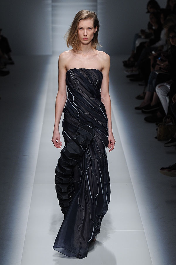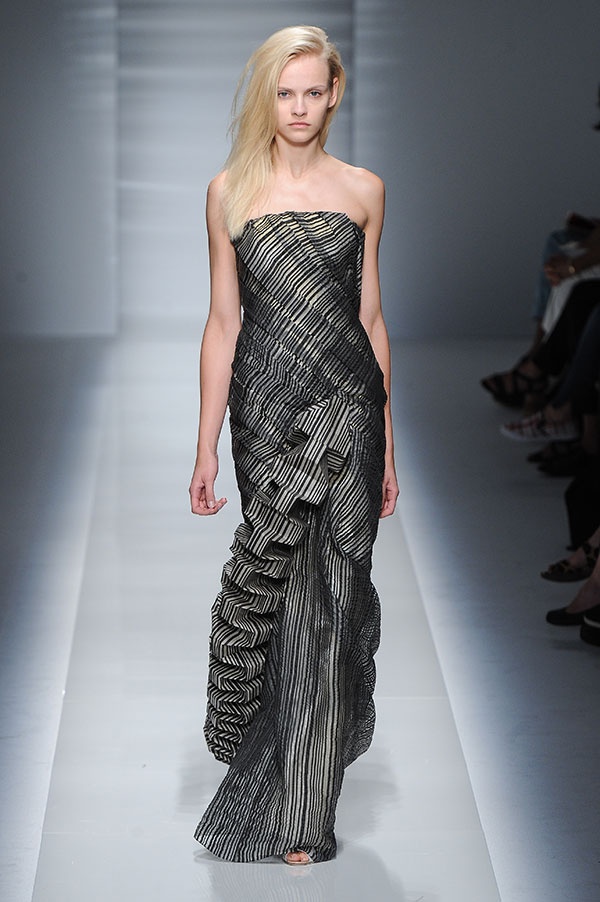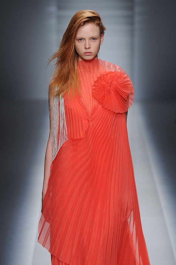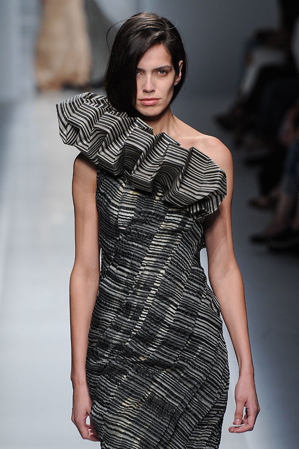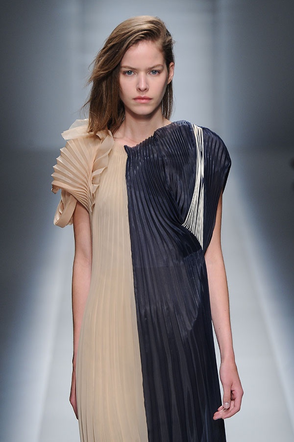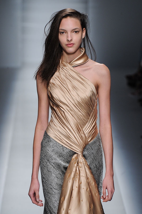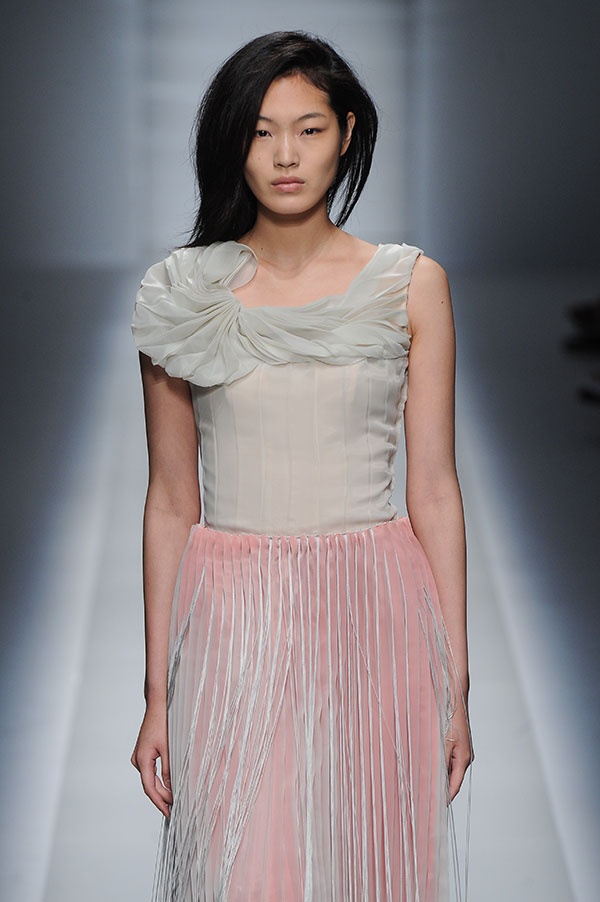 مجموعة فيونيه Vionnet كشفت عن نعومة لافتة وامتازت الفساتين بقصات مائلة وثنيات مجهرية أضافت الحركة إلى كل فستان. ثمة لمسة هندسية في كل فستان مذهل فيما تمايل مع جسم العارضة بلونه الدقيق.