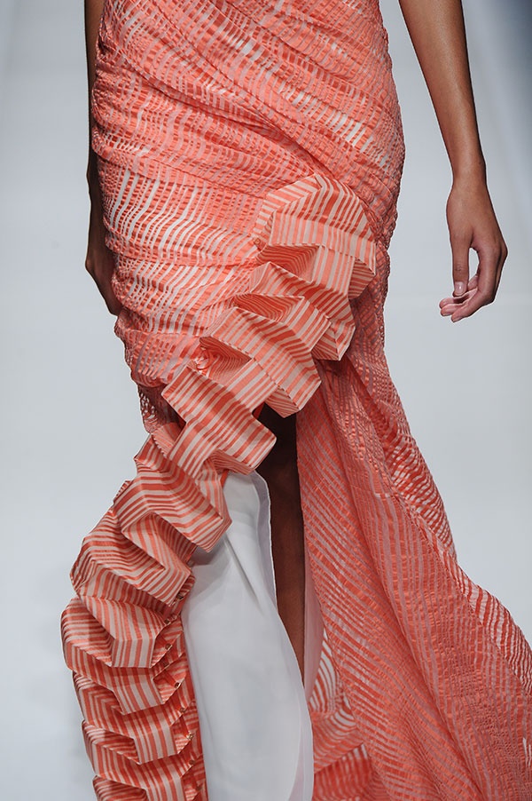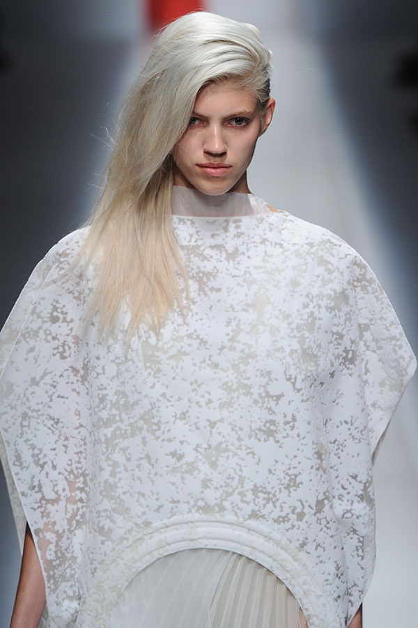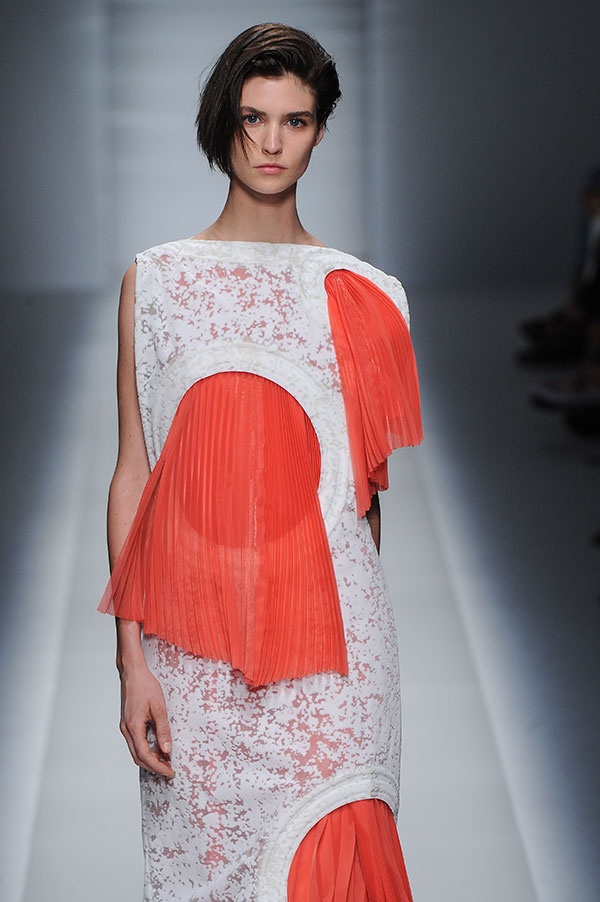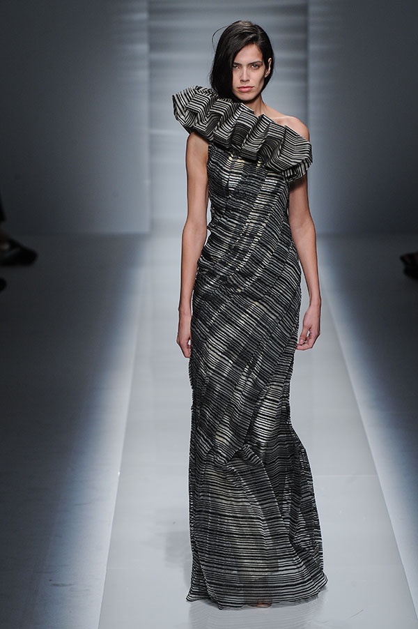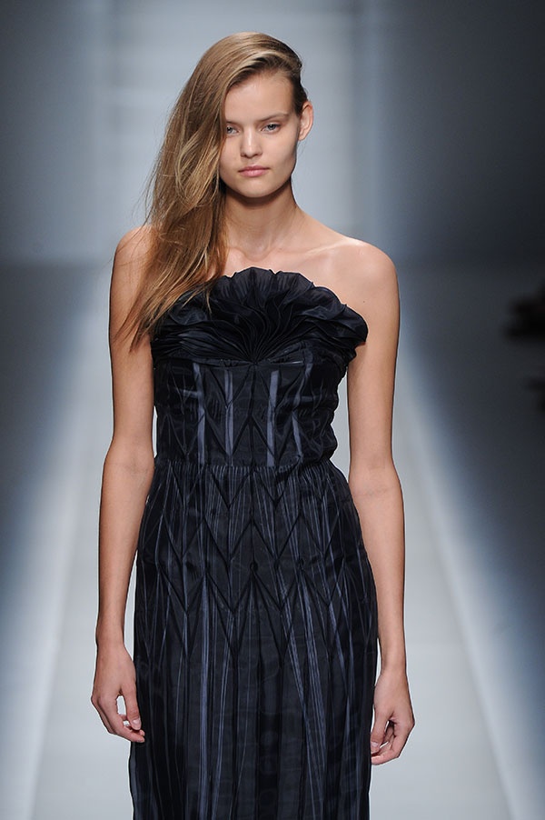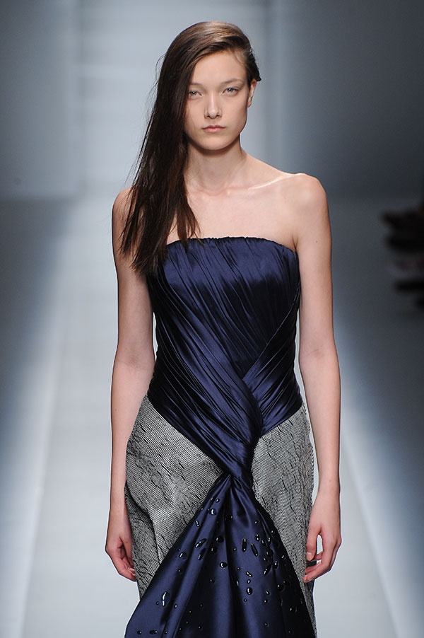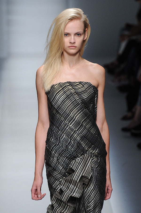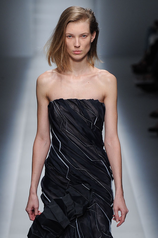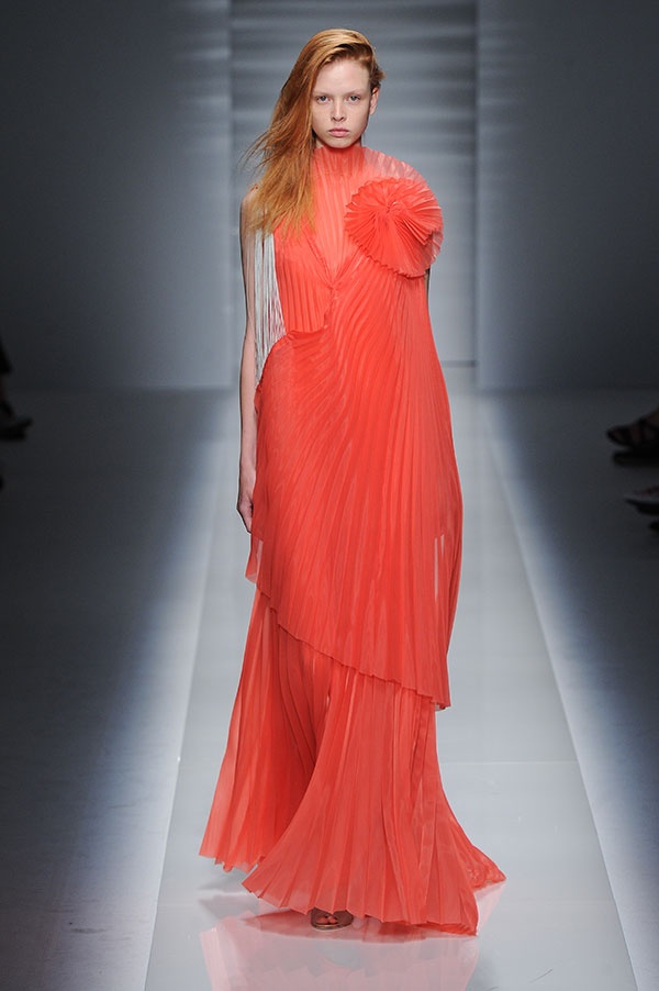 مجموعة فيونيه Vionnet كشفت عن نعومة لافتة وامتازت الفساتين بقصات مائلة وثنيات مجهرية أضافت الحركة إلى كل فستان. ثمة لمسة هندسية في كل فستان مذهل فيما تمايل مع جسم العارضة بلونه الدقيق.