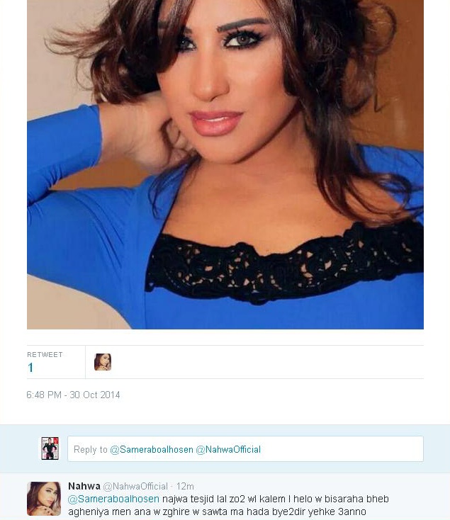 وجاء جواب نهوى من خلال تغريدة نشرتها عبر حسابها الخاص على "تويتر".