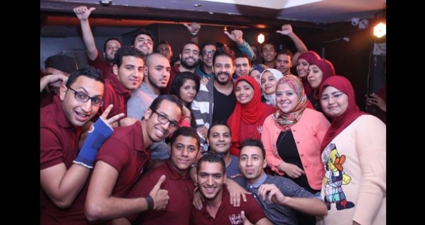 "أصدقاء حماقي وفريق عمله يحتفلون معه بعيد ميلاده".