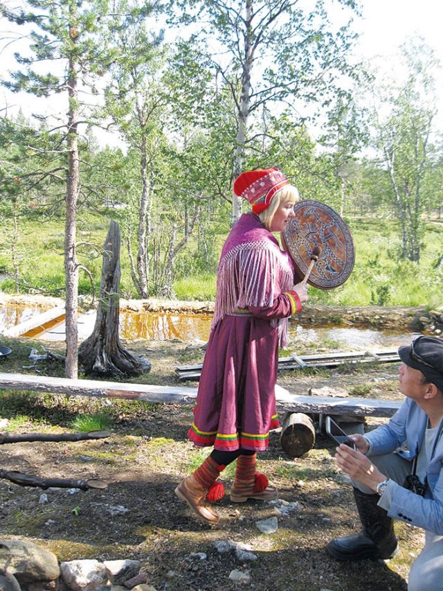 ويقال إن سكّان لابلاند يستفيدون من غزال الرنة بكل تفاصيله ما عدا الهواء الذي يتنفسّه الجلد للملابس اللحم للأكل القرون والعظم للحلي.... بدت السيدة كايا فخورة بما تنتجه يداها، واللافت أنها تعرف كثيرًا عن البلدان التي أتينا منها وتحديدًا البلاد العربية، فهي تشارك في معارض في دبي ودول الخليج.