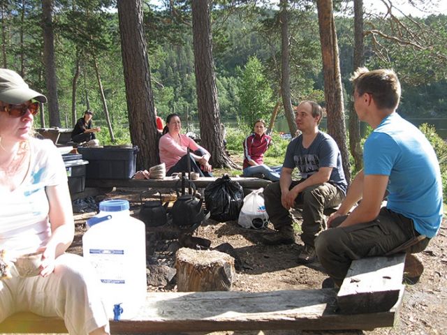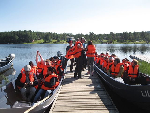 وما هي دقائق حتى إنضم إلينا ابناها أصلاكAslak الذي كان معتمرًا قلنسوة تشير إلى أصوله السامية و نيل Nils- Heiki . رحبا بنا وسألانا عن استعدادنا لرحلة نهرية لن ننساها. ارتدينا جميعا سترات الوقاية من الغرق وتوزعنا في قاربين.