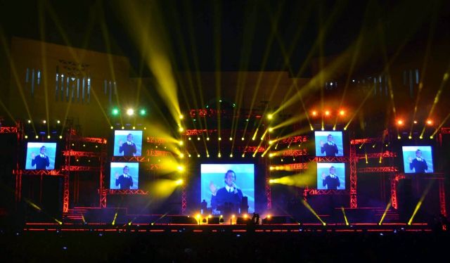 أحيا عمرو دياب حفلة غنائية ضخمة على مسرح ملعب الهوكي؛ بمجمع استادات القاهرة، وسط حضور الآلاف من جمهوره .