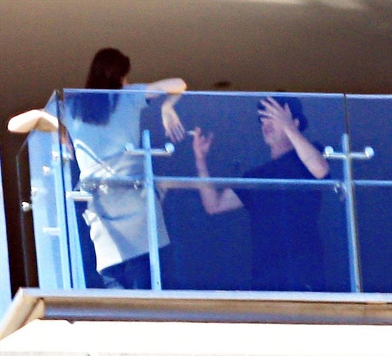 سرّبت صور للنجمة أنجلينا جولي وزوجها براد بيت وهما يتشاجران على شرفة فندق انتركونتيننتال في سيدني في استراليا.