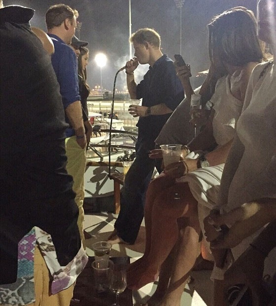 وأوضحت صحيفة دايلي ميل تفاصيل هذه الصورة قائلة إن "الأمير هاريي كان بصحبة سبعة أشخاص وهو يدخن الشيشة بعد حضوره مباراة سباق سيارات الفورمولا التي يشارك فيها البطل البريطاني لويس هاميلتون".