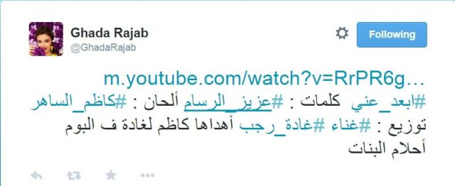 وعن الأزمة التي دارت حول ملكية أغنية "ابعد عني"، التي غناها المشترك العراقي في حلقة البث المباشر، حيث إن البعض أكد أن الأغنية ملك كاظم الساهر وأكد البعض الآخر ملكية غادة رجب للأغنية، قالت غادة عبر صفحتها: "أغنية "ابعد عني" كلمات عزيز الرسام ولحن كاظم الساهر، وأهداها كاظم لي في ألبوم "أحلام البنات".