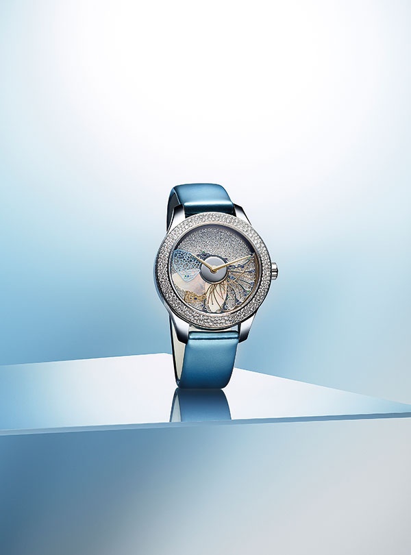 تم إطلاق مجموعة الساعات Dior VIII Grand Bal بمثابة تحية لمؤسس ديور وتقديره الكبير للحفلات. وتماماً مثل الساعات التي قضاها لابتكار فستان سهرة باستعمال أمتار من الأقمشة وأنماط معقدة، فإن كل ساعة في تلك المجموعة تنطوي على أفضل الآليات وأدق التفاصيل التي تزينها. تماماً مثل أصول الأناقة الراقية داخل كل ثوب وخارجه فإن كل واحدة من ساعات Dior VIII Grand Bal تعمل وفق معيار Dior Inversé، الذي طوّرته محترفات ساعات ديور الموجودة في «لا شو دو فون» والمصنع السويسري «سوبرود». وقد برزت الحاجة إلى 18 شهراً لصناعة كل واحدة من تلك الساعات الصغيرة المعقدة. عندما جرى إطلاق ساعات Dior VIII Grand Bal عام 2011، كانت ابتكاراً مبدعاً في حينها. الوزن المتذبذب مع العمل المفتوح الدقيق جرى تزيينه بالماسات على طريقة الشبك الراقي أو التخريم الدقيق، إلا في حال اختيار موديل عرق اللؤلؤ أو اليشب أو الخشب المطعم بالأوبالين. ومنذ ذلك الحين، تمت إضافة زخرفات عدة إلى الساعات بحيث جرى تركيب الريش الأصلي يدوياً على أسلاك ذهبية رفيعة، أو تم شبك الخيوط الحريرية بمثابة أرضية للماسات المرصعة يدوياً.