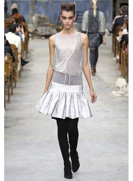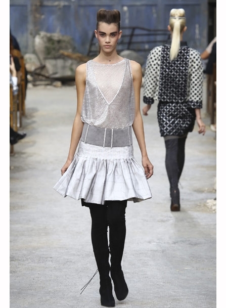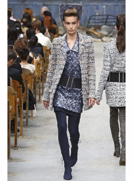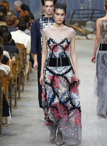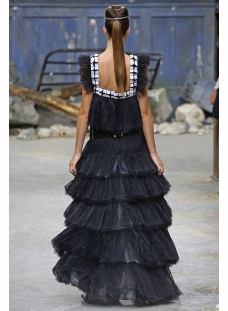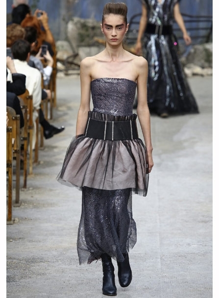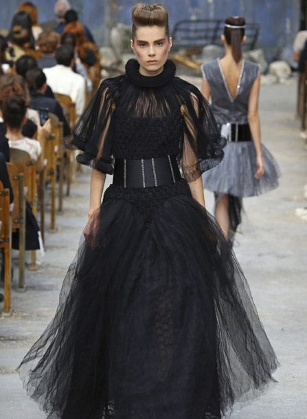 قدّمت دار Chanel هذا الأسبوع في باريس مجموعة الأزياء الراقية لخريف وشتاء 2013-2014. التنانير والفساتين أتت بتفاصيل ثلاثيّة الأبعاد، مطرّزة بالخرز والورود المعدنيّة أو الكريستال أو خطوط ودوائر هندسيّة. والخصر محدّد بحزام من التول أو الحرير أو التويد. أمّأ الألوان فارتكزت على الأبيض والأسود، بالإضافة إلى لمسات من الرماديّ والبيج والزهريّ الخافت.