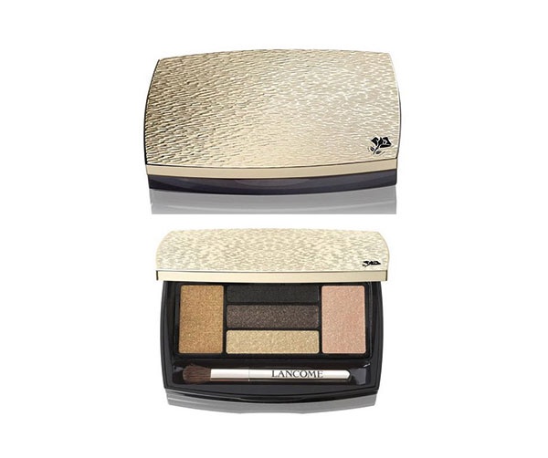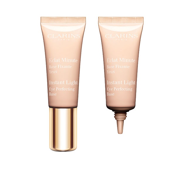 ●استعملي الكريم الممهد والمثبت للظلال Clarins Instant Light Eye Perfecting Base فوق كامل الجفن الأعلى، ثم وزّعي الظل الحيادي المضيء من علبة الظلال Lancome Parisian Lights Collection Palette Hypnose Drama Eye فوق كامل الجفن المتحرك، واستعيني باللون البرونزي لتحديد خط الرموش السفلية، وضعي لمسة من الظل الأبيض المضيء من العلبة نفسها عند زاويتي العينين لإشراقهما.