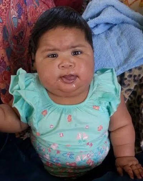 تعاني الطفلة "انديجو نوهاكوسكي" من متلازمة "بكويث ويدمان"، التي تسببت في وصول وزنها إلى 25 كيلوجرامًا، وهو ما لا يتناسب مع عمرها، بحسب ما ذكرت صحيفة "ديلي ميل" البريطانية. وتصيب هذه المتلازمة حالة واحدة من بين كل 15 ألف مولود، ويتسبب في زيادة مفرطة في النمو، ويظهر عند الولادة، وتصاحبه مجموعة من الأعراض، منها وجود تضخم في البنية واللسان، والأحشاء الداخلية.