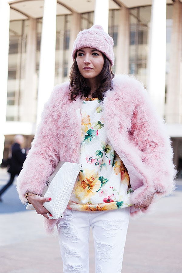 ● اختاري معطفاً بلون زهري قويّ وأضيفي إليه الأكسسوارات الملوّنة.