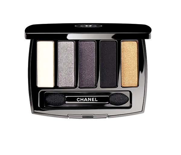 ● استعملي علبة الظلال الخماسية الألوان Chanel Les 5 Ombres de Chanel Oiseaux de Nuit، وابسطي الظل الرمادي فوق كامل الجفن المتحرّك، واستعملي الظل الأسود عند طرف الجفن الأعلى (من الزاوية الخارجية للعين) ثم موّهيه قليلاً نحو الداخل، وأضيئي الزاوية الداخلية للعين بلمسة من الظل الأبيض الماسي من العلبة نفسها. بعدها، ظللي الجفن الممتدّ تحت رسمة الحاجب بلون البيج الطبيعي Estee Lauder Pure Color Eyeshadow in Ivory Slipper.