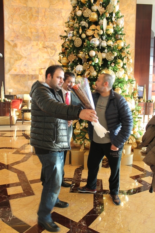 وكان في استقبال الوسوف في مطار دبي عدد من فريق العمل بالشركة المنظمة للحفل.
