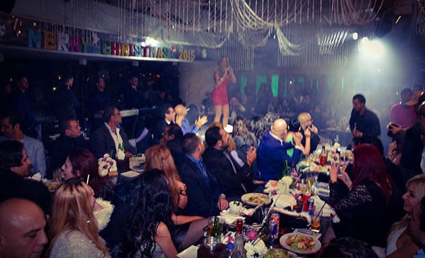 بالأحمر الشفاف تألقت النجمة نيكول سابا في في أقوى حفلات الكريسماس التي اقيمت في القاهرة في "كافاليني".