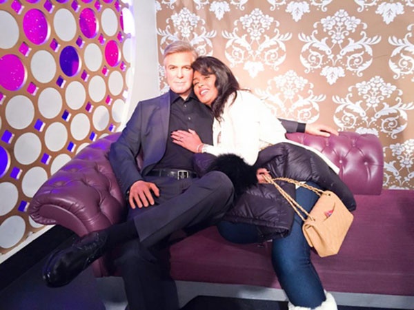 والتقطت وعد صورة لها في المتحف وهي تحضن تمثال النجم العالمي جورج كلوني الذي تزوّج أخيراً من المحامية اللبنانية أمل علم الدين.
