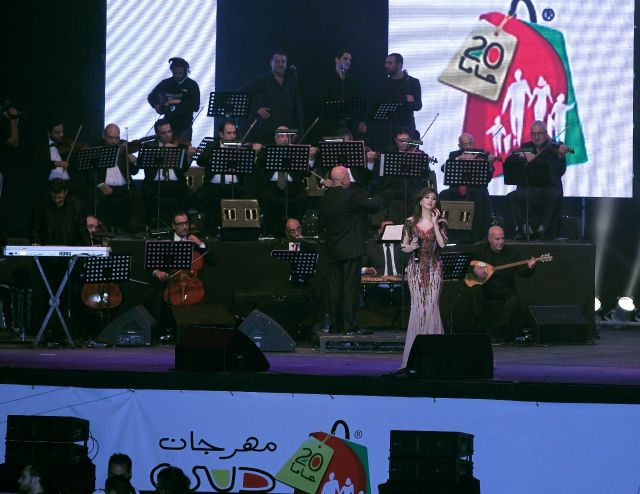 وفاجأت المطربة جمهورها بتقديم أغنية جديدة لها اعتبروها بمثابة هدية بمناسبة العام الجديد. كما كان لأغاني "الدبكة" طابعاً خاصاً عاش معها الجمهور الحاضر من مختلف الجنسيات العربية أجمل الأوقات، لتودع بعدها الجمهور بعد حوالي ساعة ونصف من الغناء المتواصل. تألقت صاحبة "عم بمزح معك" بتصميم مطرز بأسلوب مؤثر خصوصاً ترصيع الترتر الأحمر الذي أوحى وكأن الفستان لوحة ملهمة من واقع جريح.
