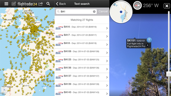 يُمكن وباستخدام الكثير من المواقع على الإنترنت البحث عن طائرة مُحددة، من خلال كتابة رقم الرحلة لمعرفة مكانها الحالي، وخط سيرها المتوقع. لكن تطبيق Flightradar24 المجاني يُقدم المزيد في هذا المجال. فبالإضافة إلى ميّزة تعقب الطائرات يُمكن أيضاً الاستفادة من ميزة الواقع المُعزز Augmented reality والكاميرا، حيث يُمكن توجيه الكاميرا إلى السماء لمعرفة الطائرة التي تمر فوق المستخدم في تلك اللحظة.