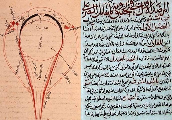 ووضع ابن الهيثم بالبصريات والرياضيات 37 مؤلفا، منها "كتاب المناظر" الشهير، فاعتبروه "مؤسس علم الضوء" لدرسه فيه مدى علاقته بطب العيون وبالنظر، بل درس انعكاساته وأطواله وعروضه وكيف يتحول الى طيف، ودرس سرعته أيضا، وسبق آينشتاين بقوله إنها محددة، وإنه ينكسر وينعطف، لذلك مهد الطريق فيما بعد لاختراع الكاميرات بأنواعها، حتى قالت عنه موسوعة "سارتون" العلمية إنه أول مخترع حقيقي للكاميرا، ولم يسبقه إليها سواه. وأشهر إسهامات ابن الهيثم الذي كان يتقن لغات عدة، هو تصحيحه في علم البصريات لكثير من المفاهيم العلمية التي كانت سائدة في عصره كالمعميات، وأهمها إثباته أن الضوء هو الذي يأتي من الأجسام إلى العين فتراها، وليس العكس "وإلا لكنا نرى في الظلام". كما قال: "وما كنا نتألم إذا ما نظرنا الى الشمس". وهذه حقيقة اكتشفها بالتجربة، ومهدت فيما بعد لاختراع الكاميرا، إضافة أنه أول من قام بتشريح العين تشريحا كاملا ليدرس وظيفة كل عضو فيها. وبرع ابن الهيثم بالهندسة والفلسفة والفلك والفيزياء وعلوم الدين والنفس والموسيقى، فكتب عن تأثير الألحان على "أرواح الحيوان" وعن سرعة الجمل وكيف تزيد وتقل مع استخدام موسيقى "الحداء" المعروفة في شبه الجزيرة العربية. كما أعطى أمثلة عن كيفية تأثير الموسيقى على سلوك الحيوان وحالته النفسية عبر تجارب أجراها على الطيور والخيول والزواحف، وهناك من قرأ ما كتب بعد ألف عام، فراح يستخدم موسيقى موزارت بشكل خاص في مزارع المواشي، وفوجئ بأن الأبقار تدر المزيد من الحليب