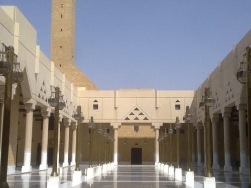 ووفقًا لتقارير صحفية سعودية، توالى اهتمام الملوك بالمسجد، حيث شهد عدة إضافات وإصلاحات خلال هذه العقود، لعل أبرزها ما تم فى عهد المؤسس الملك عبدالعزيز آل سعود، من بنائه بناء حديثًا وإنارته لأول مرة بالكهرباء، حسبما نشرت صحيفة «الشرق الأوسط» اللندنية، التى أشارت إلى افتتاح الجامع فى عهد الراحل الملك فهد بن عبدالعزيز ضمن مشروع تطوير منطقة قصر الحكم.