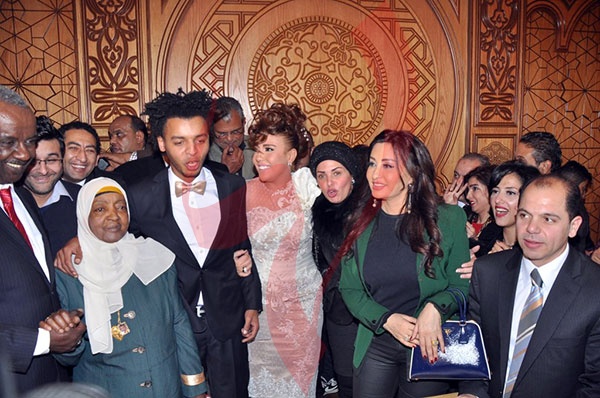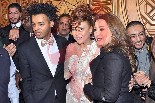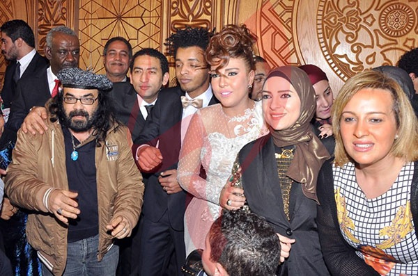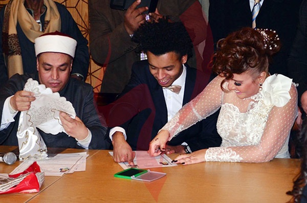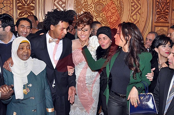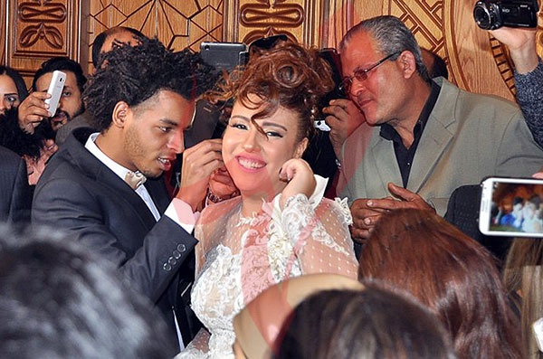 وشهد الاحتفال في بدايته حالة من التوتر وعدم تمكن المأذون من عقد القران، بسبب تدافع مراسلي الصحف والقنوات الفضائية على المنصة.