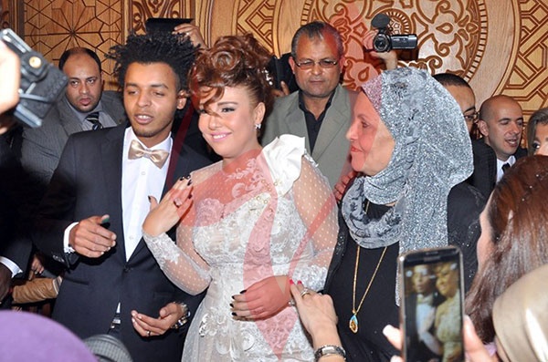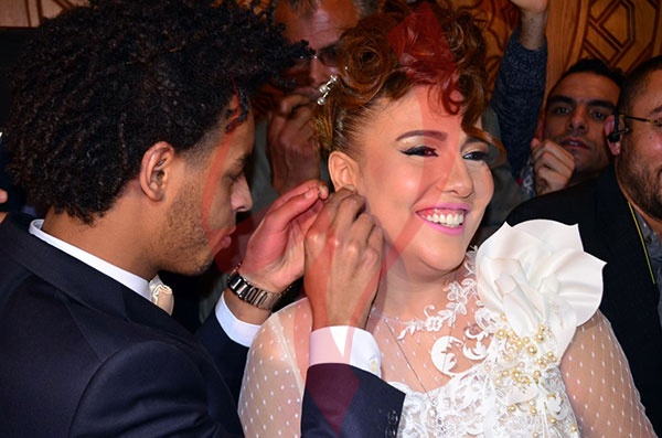 بالصور والفيديو - تدافع مراسلي الفضائيات يعطل عقد قران مي كساب وأوكا