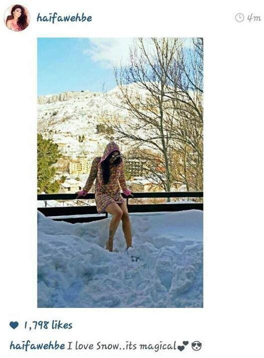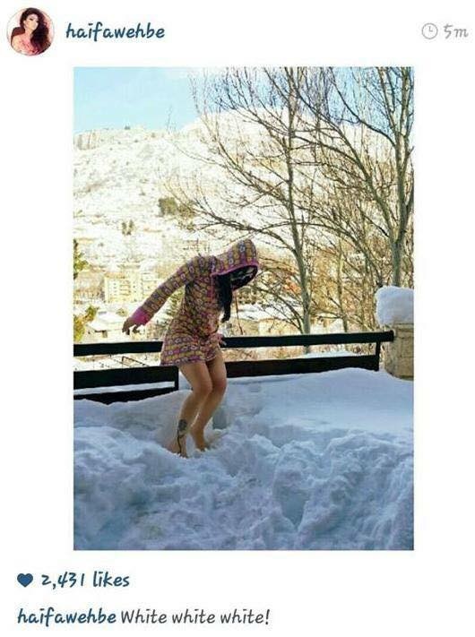 الصورتان اللتان إلتُقطتا لهيفا وهي تلعب على الثلج حافية القدمين، لاقتا أكثر من 2000 إعجاب بأقل من 5 دقائق فقط، وكانت النجمة قالت عن الصورتين "انا أحب الثلج، فهو سحري".
