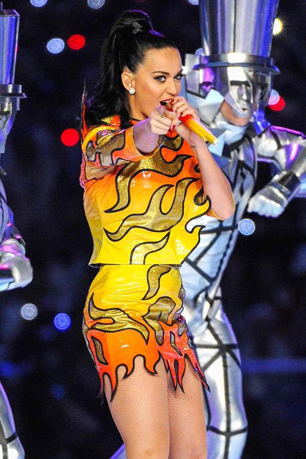 ضج العالم بفستان النجمة الأميركية كاتي بيري التي غنّت في دوري السوبر للكرة القدم الأميركية مرتدية فستانا كلهب النار وواقفة على مجسم ضخم لأسد.