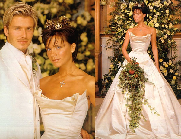 6- فيكتوريا ودايفيد بيكهام: التقت نجمة فريق Spice Girls فيكتوريا ألمع نجوم المنتخب الإنكليزي دايفيد عام 1997، وتتالت لقاءات الثنائي بعدما تعارفا في مباراة خيرية لكرة القدم بين مانشستر يونايتد وتشلسي، وأعلنا ارتباطهما في العام التالي.