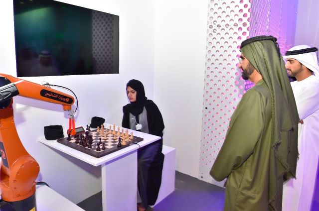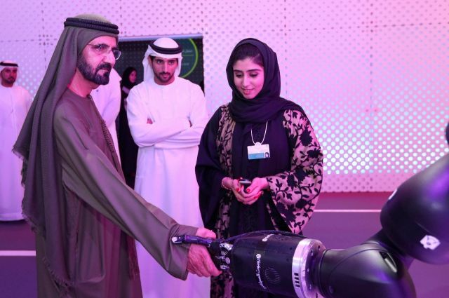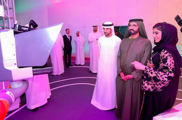 وتجول سموه في المعرض الذي يضم تصورا للجيل القادم من حكومات المستقبل والعديد من التقنيات الجديدة التي يتم استخدامها لأول مرة لتقديم الخدمات المستقبلية الحكومية بالإضافة إلى مجموعة من التطبيقات والابتكارات والتي ستشكل ركيزة الجيل الجديد من الخدمات الحكومية، والتقى الشيخ محمد بن راشد آل مكتوم ايضا بأسيمو .. الروبوت الأكثر تقدما عالميا الذي طورته شركة هوندا الذي استعرض قدراته أمام سموه.