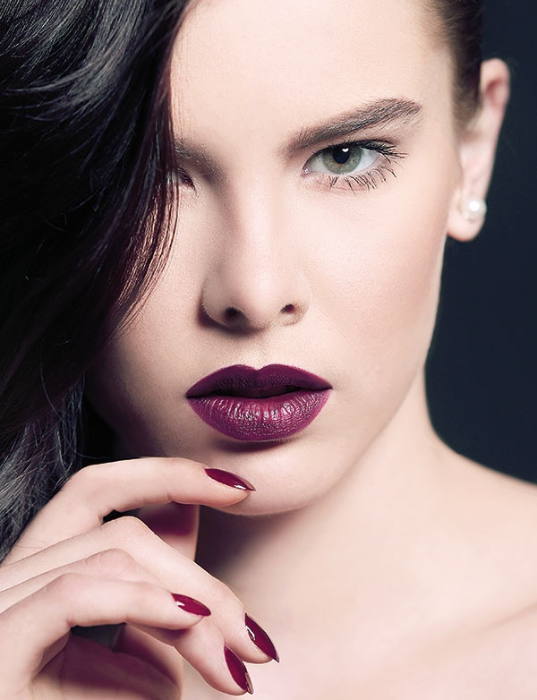 جمال قوطي وإنما غير دراماتيكي... حيث الشفاه هي الأبرز: أحمر داكن، أو خوخي، أو باذنجاني... أحمر شفاه مخملي بكل معنى الكلمة...