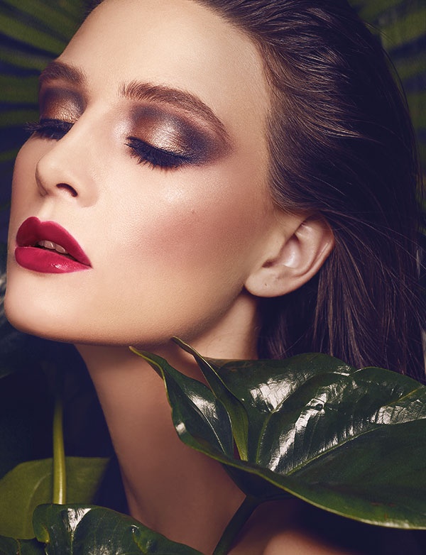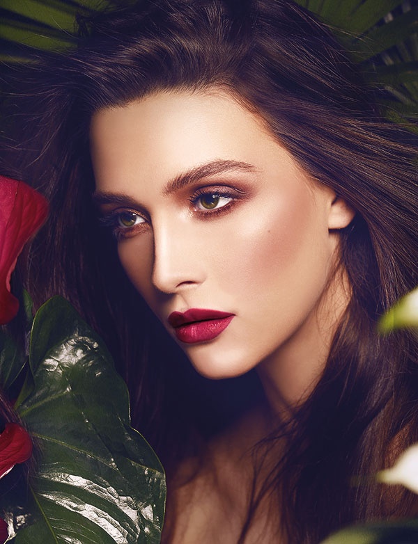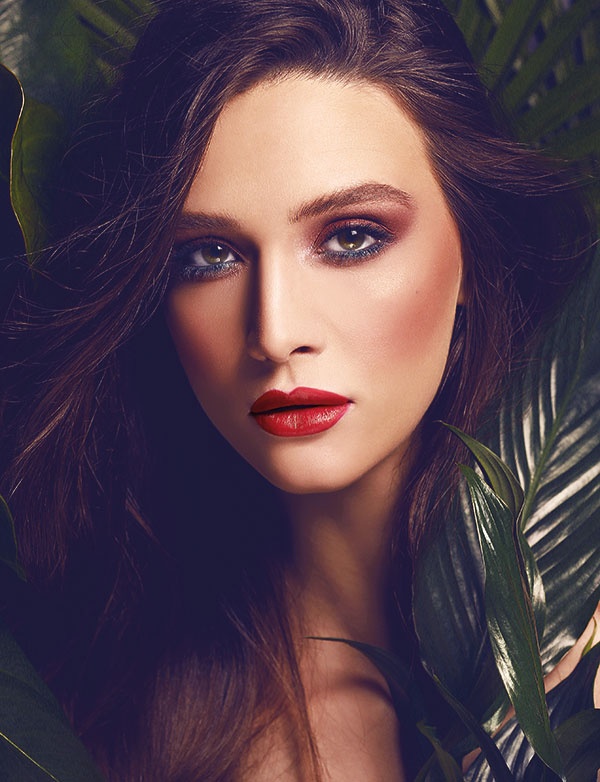 ظلال عيون بألوان ترابية، بني وبرونزي وذهبي، وأحمر شفاه اقتبس من الطبيعة أجمل ألوانها لمنحنا ذلك الجمال الآتي مباشرة من المناطق الاستوائية...