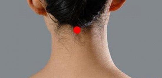 وتعتبر هذه النقطة أساس الارتباط بين الجمجمة والرقبة، وهي نقطة ضغط مهمة في جسم الإنسان، وبحسب الدراسة فأن وضع مكعب ثلج بانتظام عليها يحفز الخلايا لتجديد شباب الجسم.
