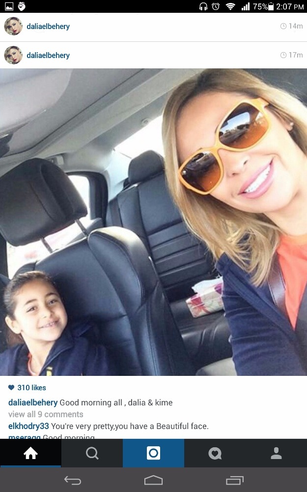 تحرص الفنانة داليا البحيري على قضاء معظم أوقات فراغها مع ابنتها الوحيدة قسمت ، لتعوضها عن فترات غيابها عنها أثناء التصوير ، وفي احدى نزهاتهما معا ، قررت داليا التقاط صورة سيلفي لها مع ابنتها وهما في السيارة.