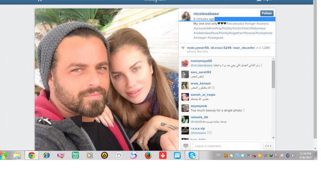 قررت الفنانة نيكول سابا وضع حد للشائعات؛ التي انتشرت خلال الفترة الماضية، حول نشوب خلافات بينها وبين زوجها يوسف الخال؛ بسبب انشغالها الدائم عنه بالعديد من الارتباطات الفنية، من خلال نشر صورة جديدة تجمعها به عبر حسابها على إنستغرام ، وعلقت عليها: "My one and only"، لتؤكد لجمهورها بهذه الطريقة أنها تعيش حياة سعيدة ومستقرة مع زوجها وابنتهما الصغيرة نيكول.