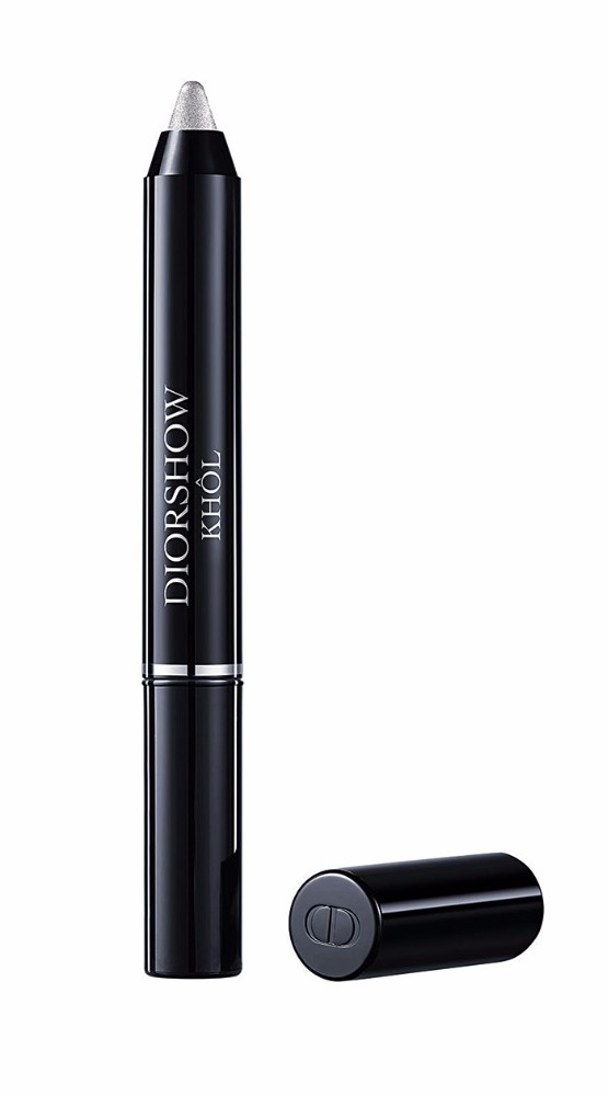 • حدّدي جذور الرموش العليا من الزاوية الداخلية للعين بقلم الكحل الفضّي الطويل الثبات Dior Diorshow Khol in Pearly Silver no.039، وكحّلي الجفن الداخلي للعين وجذور الرموش السفلية بقلم الكحل الأبيض الذي يوسّع النظرة Dolce & Gabbana Intense Khol Eye Crayon in True White no.02.