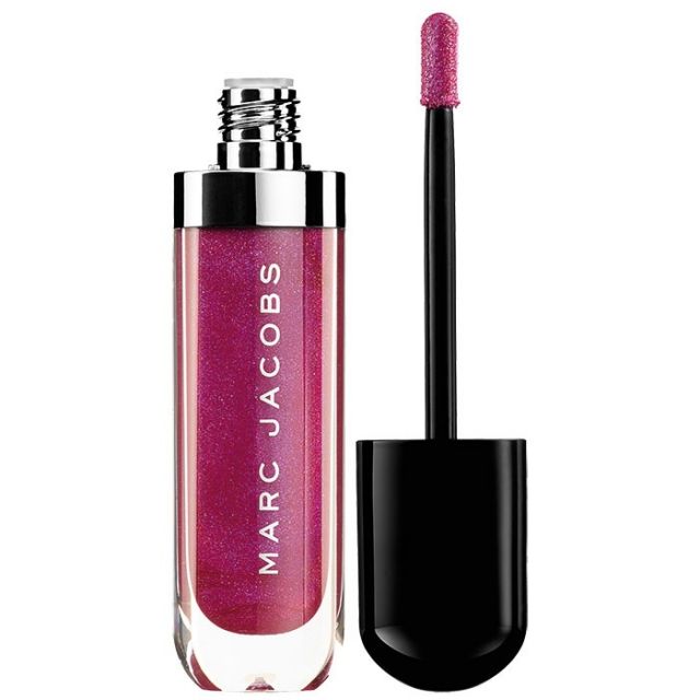 حدّدي شفتيك بقلم Chanel Le Crayon Levres in Rubellite no.58، ثم غلفيهما بملمّع الشفاه Marc Jacobs Lust For Lacquer Lip Vinyl Sheer Studded Kiss.