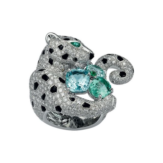 أحجار كريمة نادرة وفريدة وذهب أصفر وأبيض ومواد ثمينة أخرى تحوّلت إلى ابتكارات مدهشة هي تحف المستقبل. كما جذب الأنظار والقلوب نمر كارتييه الشهير والمتلألئ بأنقى الماسات، والتمساح المصنوع من حبات الماس الحامل بين ذيله وفمه زمرّدة ضخمة، إلى جانب التيجان والثعابين المتلوّنة، والثعبان الماسي الذي يعانق حجر الأوبال الرائع على خلفية من حبات اللؤلؤ. أما الأشكال الهندسية فتتدفّق منها شلالات حبات الماس والأحجار الكريمة أو تؤطّرها شراريب اللؤلؤ.