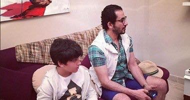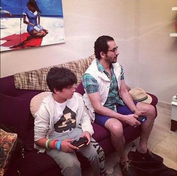 بالصور- أحمد حلمي يلعب "بلاي ستيشن" مع ابن أنغام ومنى زكي تتدخل