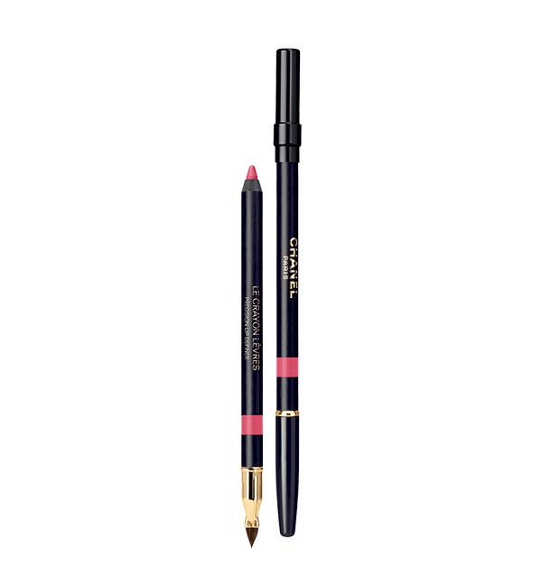 حدّدي شفتيك بقلم Chanel Crayon Levres in Rubellite ثم لوّنيهما بأحمر الشفاه الأحمر الكرزي M.A.C Julia Petit Lipstick in Petit Red.