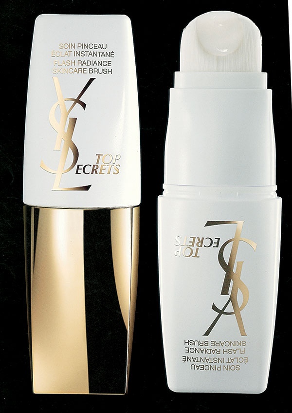 عزّزي تألق بشرتك باستعمال Yves Saint Laurent Top Secrets Flash Radiance Skincare Brush، ووحّدي لون السحنة بواسطة كريم الأساس المرطب والمشرق Max Factor Skin Luminizer Foundation in Natural no.50، ثم ثبّتي الماكياج باستعمال البودرة الطلقة Estée Lauder Double Wear Perfecting Loose Powder.