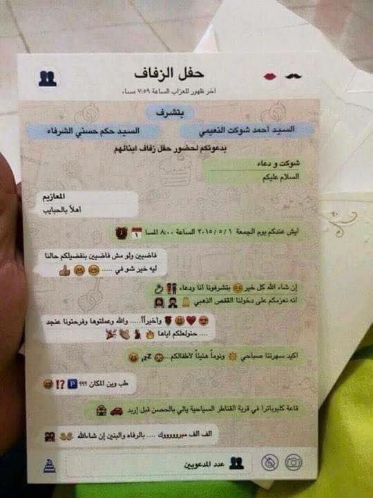 بالصور- أغرب دعوة لزفاف... الواتساب حاضراً بقوة