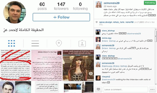 لأول مرة؛ منذ انفجار قضية نسب طفلي الفنانة زينة، إلى الفنان أحمد عز، خرجت زينة لتدافع عنه عبر صفحتها الرسمية بموقع الصور الشهير إنستغرام، وذلك بعد أن أرسلت لها أحد معجبيها حساباً يتم من خلاله التشهير بأحمد عز، فردت زينة قائلة: "حد باعتلي الأكاونت ده، وبيقوللي أعملّه فولو، مهما كان بينشر حاجات حقيقية وصح، عيب برده، ده أبو ولادي، للأسف مهما كانت أخلاقه مش هانزل للمستوى بتاعه ده، الله يسهله، حد يعرف مين اللي عامله من فضلكم؟"